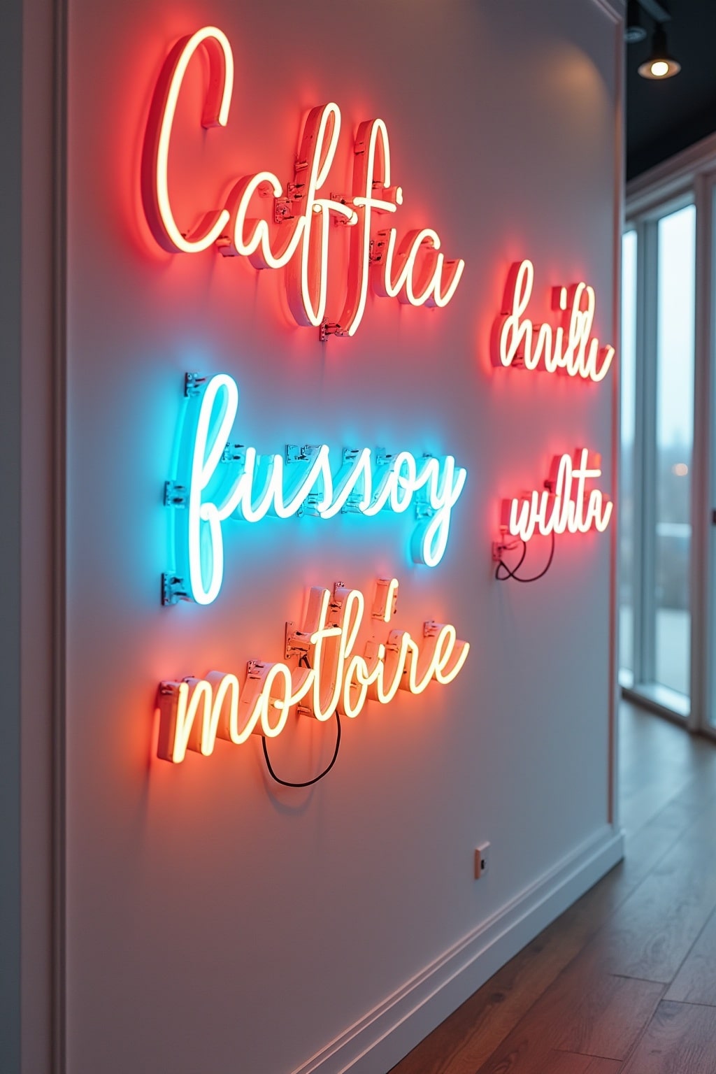 - Kombinationen aus mehreren Schriftzügen oder LED-Symbolen erzeugen dynamische Wandgalerien