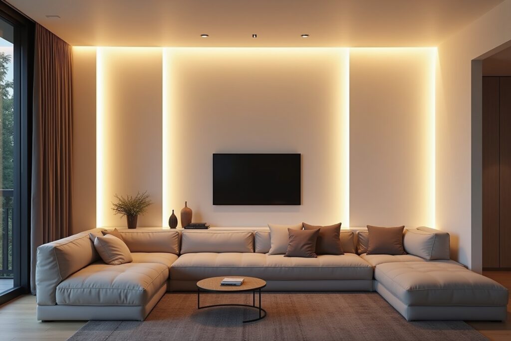 Verwandle dein Wohnzimmer in eine gemütliche Wohlfühloase mit indirekten LED Wandpaneelen. Platziere sie hinter dem Sofa oder dem Fernseher, um eine sanfte Hintergrundbeleuchtung zu erzeugen. Kombiniere verschiedene Formen und Größen, um einen interessanten visuellen Effekt zu erzielen. Smarte LED Wandpaneele ermöglichen es dir, die Lichtfarbe und Helligkeit je nach Stimmung anzupassen.