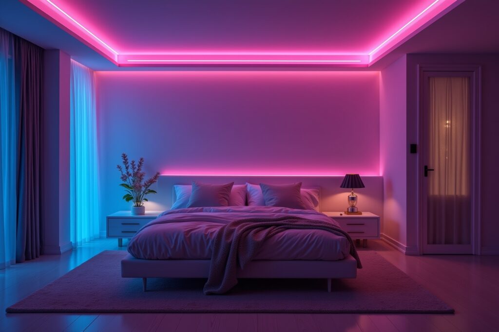 | Schlafzimmer | 2700 – 3000 (Warmweiß), Dimmbar | Ruhe, Entspannung | Nachttischlampen, indirekte LED-Streifen, Deckenfluter |